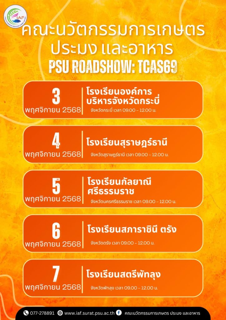 กิจกรรม PSU Roadshow : TCAS69 ประชาสัมพันธ์หลักสูตรและแนะแนวเส้นทางการศึกษาต่อให้กับน้อง ๆ